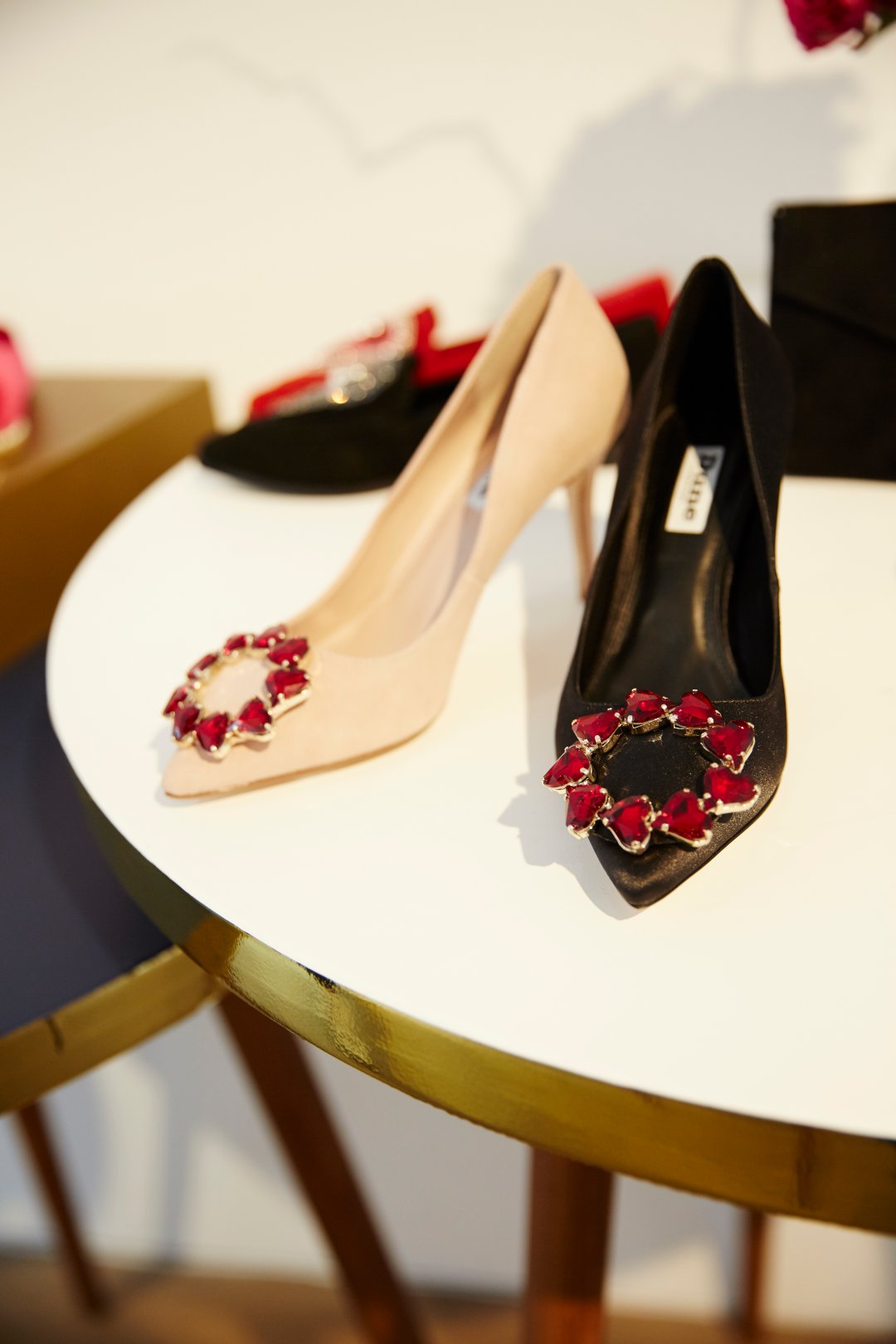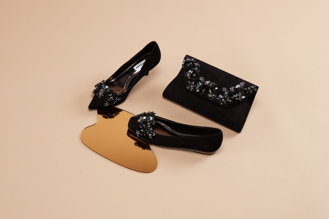 If you want a statement party shoe, then choose one that’s dripping in jewels. BETTINE is a simply stunning black satin high heel with the prettiest of ruby hearts brooch perched on its toes. BOWPEEP, with its pretty kitten heel carries a lavish diamante bow that will catch the light and all the attention. Even flats get the sparkly treatment, GLAMUP is the queen of backless loafers, with its faux fur lining and dazzling diamante brooch, its sizzles whilst oozing comfort.